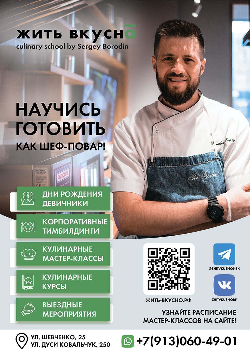 Жить вкусно - сеть кулинарных школ в Новосибирске, уникальные, авторские кулинарные курсы, тимбилды, событийные мероприятия от команды профессиональных шеф поваров города.